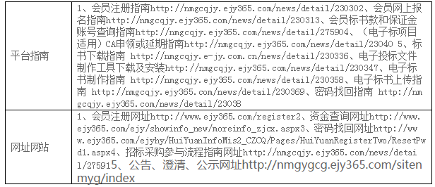 | 附件:設(shè)備清單 (2)投標(biāo)人資格要求 本次招標(biāo)要求投標(biāo)人須具備以下資質(zhì),人員、設(shè)備、資金等方面具有相應(yīng)的能力: ①須在工商行政管理部門辦理登記注冊(cè)(具有有效營(yíng)業(yè)執(zhí)照); ②所供貨物均須提供產(chǎn)品合格證,電器類產(chǎn)品須提供“3C”認(rèn)證證書。 ③所有資質(zhì)文件、報(bào)告等真實(shí)有效,不得出現(xiàn)偽造、涂改、借用等情形。 ④履行合同所必需的設(shè)備和專業(yè)技術(shù)能力及專業(yè)技術(shù)人員; ⑤投標(biāo)設(shè)備必須滿足招標(biāo)人的設(shè)備參數(shù)要求,需要提供投標(biāo)設(shè)備型號(hào)品牌、各模塊性能參數(shù)、尺寸等材料和設(shè)備正面、側(cè)面、背面、平視俯視等角度彩照; ⑥具有良好的銀行資信、商業(yè)信譽(yù)和履行合同的能力,提供財(cái)務(wù)報(bào)告或銀行資信證明; ⑦在最近三年內(nèi)沒有騙取中標(biāo)和嚴(yán)重違約等問題,可提供承諾書或法人在“國(guó)家企業(yè)信用信息公示系統(tǒng)”和“中國(guó)裁判文書”網(wǎng)無(wú)不良記錄的打印頁(yè); ⑧單位負(fù)責(zé)人為同一人或者存在直接控股、管理關(guān)系的不同供應(yīng)商,不得參加同一合同項(xiàng)下的采購(gòu)活動(dòng);與采購(gòu)人存在利害關(guān)系可能影響采購(gòu)公正性的法人、其他組織,不得參加競(jìng)標(biāo); ⑨不接受聯(lián)合體 (3)招標(biāo)文件的獲取 凡有意參加本項(xiàng)目的潛在投標(biāo)人,請(qǐng)于2020年8月26日9時(shí)至2020年9月2日17時(shí) (北京時(shí)間,下同),登錄內(nèi)蒙古產(chǎn)權(quán)交易市場(chǎng)網(wǎng)站“http://www.nmcqjy.com/”進(jìn)行會(huì)員注冊(cè)及辦理CA, CA申領(lǐng)方法及平臺(tái)操作指南請(qǐng)登錄(http://www.ejy365.com/newlogin)進(jìn)行學(xué)習(xí),在網(wǎng)上購(gòu)買并下載招標(biāo)文件。 提示:CA僅用于投標(biāo)文件的加密和解密,CA申領(lǐng)在供應(yīng)商系統(tǒng)中即可完成,建議在開標(biāo)時(shí)間前10天以上制作投標(biāo)文件,請(qǐng)注意在領(lǐng)購(gòu)招標(biāo)文件時(shí)間內(nèi)下載招標(biāo)文件,否則將無(wú)法參與本項(xiàng)目,CA售價(jià)250元/個(gè),售后不退。 本次項(xiàng)目的澄清/修改/變更/重新招標(biāo)公告會(huì)通過(guò)網(wǎng)站發(fā)布,請(qǐng)參加的投標(biāo)人及時(shí)登錄系統(tǒng)查看。 招標(biāo)文件(僅支持E交易下載領(lǐng)取)售價(jià)500元/標(biāo)段,售后不退。 賬戶名:內(nèi)蒙古產(chǎn)權(quán)交易中心有限責(zé)任公司 開戶行:中國(guó)銀行內(nèi)蒙古自治區(qū)分行營(yíng)業(yè)部 行號(hào):104191014056 賬號(hào):以下載標(biāo)書系統(tǒng)彈出通知信息為準(zhǔn) 串標(biāo)行為認(rèn)定:標(biāo)書款和保證金的子帳號(hào)為隨機(jī)生成,參加同一項(xiàng)目的多家供應(yīng)商的標(biāo)書款或保證金匯入同一子賬號(hào),視為串標(biāo)行為。 (4)投標(biāo)文件的遞交 投標(biāo)文件遞交的截止時(shí)間(投標(biāo)截止時(shí)間,下同)為2020年9月9日9時(shí)30分,投標(biāo)人應(yīng)在截止時(shí)間前通過(guò)內(nèi)蒙古產(chǎn)權(quán)交易中心電子(E交易平臺(tái))招標(biāo)投標(biāo)交易平臺(tái)遞交電子投標(biāo)文件。 注:逾期送達(dá)的投標(biāo)文件,電子招標(biāo)投標(biāo)交易平臺(tái)將予以拒收。采用遠(yuǎn)程電子開標(biāo),投標(biāo)人無(wú)須到達(dá)開標(biāo)現(xiàn)場(chǎng),可遠(yuǎn)程使用CA解密。 (5)付款方式 協(xié)議簽訂之日起5個(gè)工作日內(nèi),我方向供應(yīng)商支付貨款總金額的45%作為定金,并于到貨5個(gè)工作日內(nèi),供應(yīng)商向我方提供全額形式增值稅普通發(fā)票,再付50%貨款,剩余5%貨款作為質(zhì)保金,如無(wú)質(zhì)量問題1年后付清。 3.聯(lián)系方式 采購(gòu)人名稱:內(nèi)蒙古烏蘭美健康服務(wù)集團(tuán)有限公司 聯(lián) 系 人:姚佳秀 聯(lián)系電話:17604742599 內(nèi)蒙古產(chǎn)權(quán)交易中心有限責(zé)任公司 地址:內(nèi)蒙古呼和浩特市賽罕區(qū)阿吉泰路3號(hào) 聯(lián) 系 人: 楊艷 聯(lián)系電話: 18586095937 郵箱:nmcqcg@163.com 技術(shù)支持電話:0471-3473040(報(bào)名、標(biāo)書下載上傳等)/0471-3473016(CA申請(qǐng)) |
